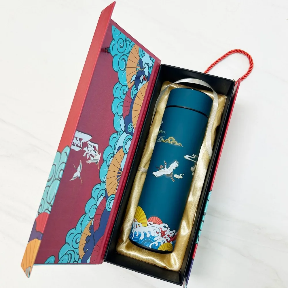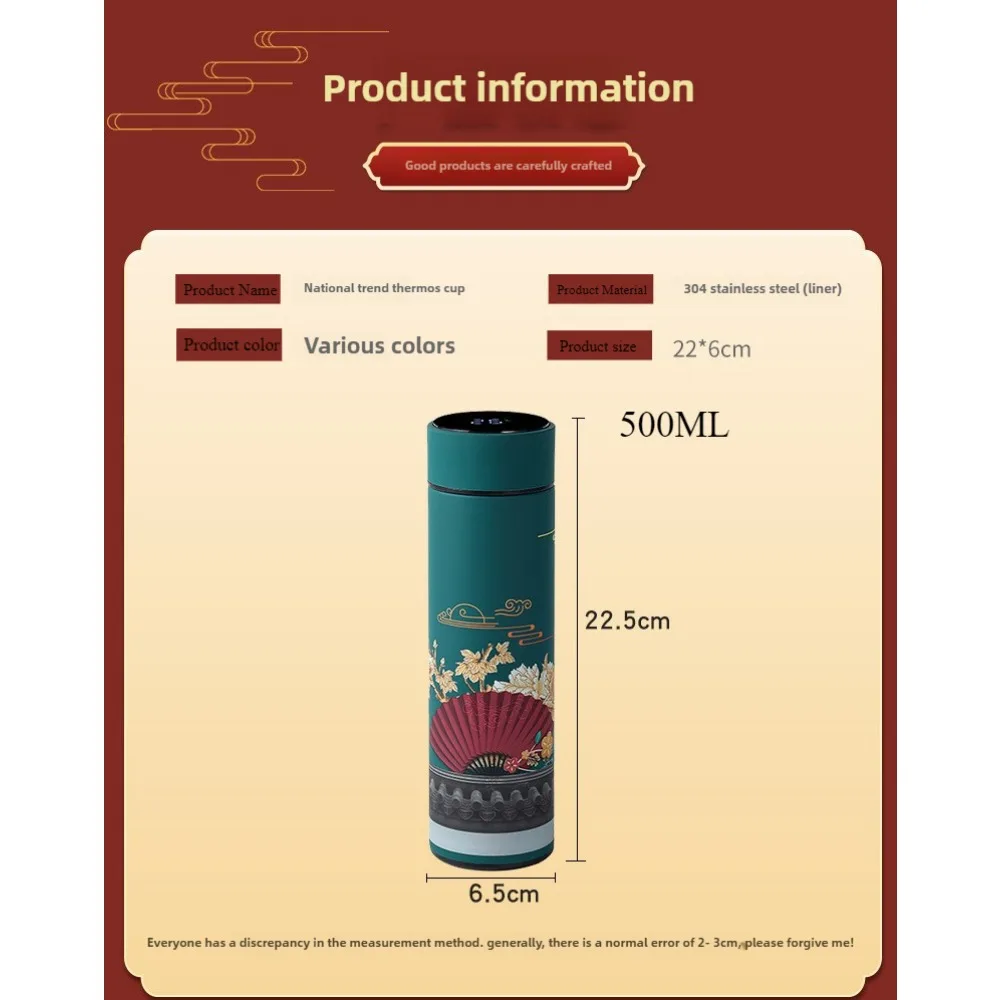 Enjoy your favorite beverages at the perfect temperature with this Insulated Thermos Flask with Thermometer, combining functionality with elegant design. With a 16oz capacity, this bottle is ideal for coffee, tea, or cold drinks on the go. The built-in thermometer lets you check the temperature instantly, helping you sip safely and comfortably. Crafted from BPA-free materials with a leakproof seal, it ensures safe and mess-free transport in your bag. The removable filter allows you to brew loose tea or infuse drinks with ease, adding versatility to your daily routine. Its stylish Asian-inspired design makes it not only practical but also visually appealing.